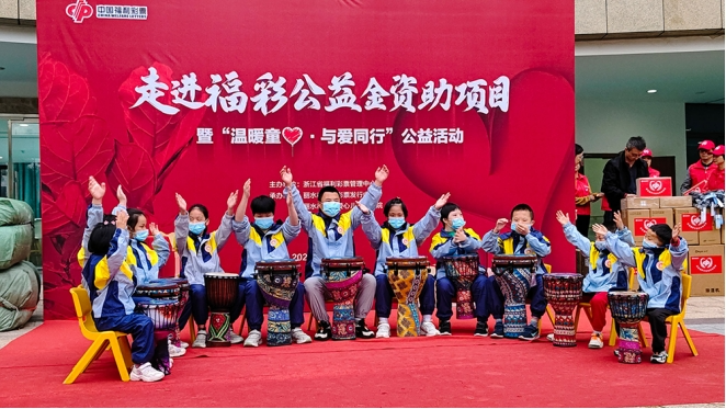 在活动现场,丽水福彩为福利院的孩子们送去了棉被、暖手袋、取暖器、除湿机等价值5万元的慰问物资。福利院的孩子们展示了多才多艺的一面,现场气氛十分活跃。爱爱小朋友深情演唱了《我和我的祖国》;一群可爱的小朋友们热情洋溢地敲打击乐演奏了《棒棒糖》;五彩缤纷的气球承载着孩子们的心愿飞向天空;爱心人士与孩子们在烘焙坊手工DIY制作小饼干。活动结束后,一名福彩销售员现场向“帮扶孤困儿童项目”捐款1万元,她表示,希望今后能有更多爱心人士关注这些孩子,向弱势群体伸出援手。