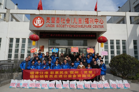 阳春三月天,公益暖人间。3月22日下午,宿州市灵璧县福彩管理站组织37名福彩网点销售员,开展 “福泽江淮,彩惠民生——福彩销售员走进公益金资助项目”活动,走进灵璧县儿童福利中心,为孤残儿童送去春日关怀。