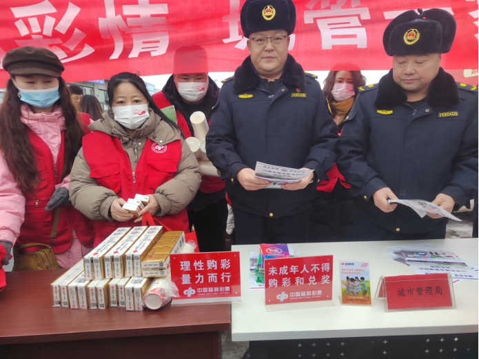 12月4日,新疆塔城福彩联合沙湾市城市管理局开展了主题为“公益福彩情 城管一家亲”打击非法彩票宣传活动,以实际行动展现中国福利彩票的责任与担当。