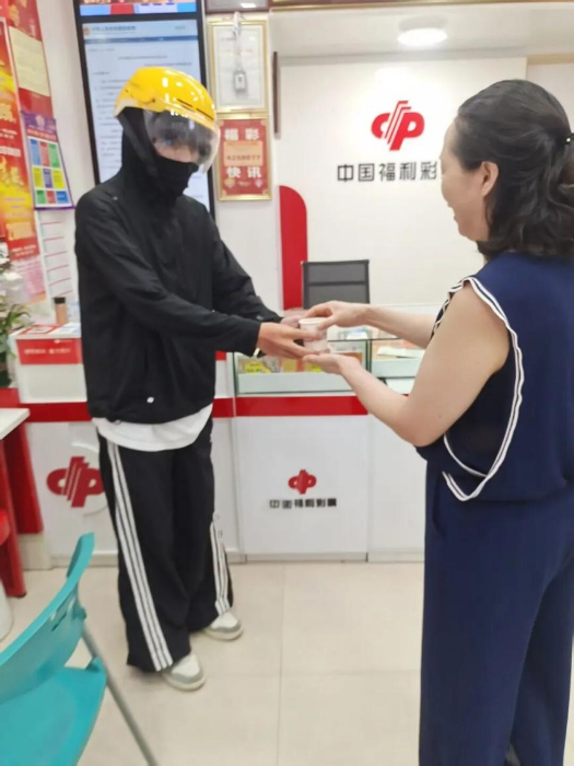 6月炎热的温州,福彩站的店门“吱呀”一声敞开,清凉的空调风涌出,环卫工人王大爷进来了。“老板,外面太热了,我进来休息一下。”陈爱秋热情地迎了上去,给王大爷递了一杯水。