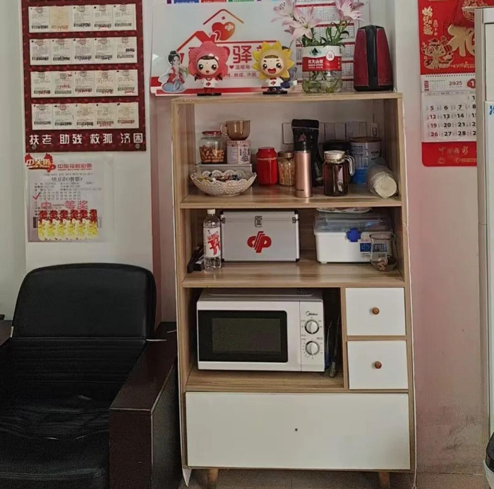 这样的场景时常发生。去年,福彩站搬迁到新址,挂牌了“福彩爱心驿站”,站内药箱、免费茶水、充电设备等便民设施一应俱全。有时看到清洁工、快递小哥坐在店门口的台阶上休息,陈爱秋都会主动打开店门,热情邀请他们进店休息。