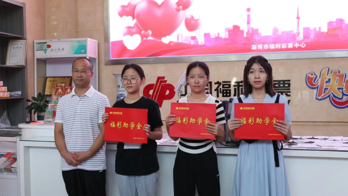 揭牌仪式上,淄博市福彩中心为受助大学生发放了本年度的助学金。“福彩助学行”活动自2018年启动以来,累计发放助学金19.2万元,资助贫困大学生24人。