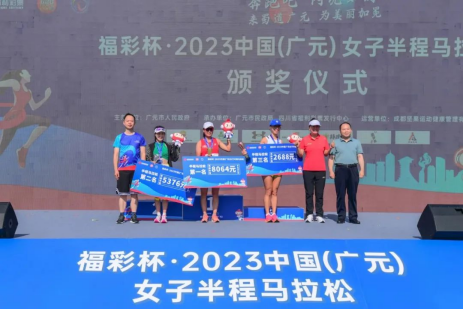 经过激烈角逐,半程马拉松项目中,杨凤霞以1小时24分12秒成绩获得第一名,吴杰以1小时25分39秒成绩获得第二名,罗珍以1小时27分46秒成绩获得第三名,并分获福彩双色球彩票奖品。