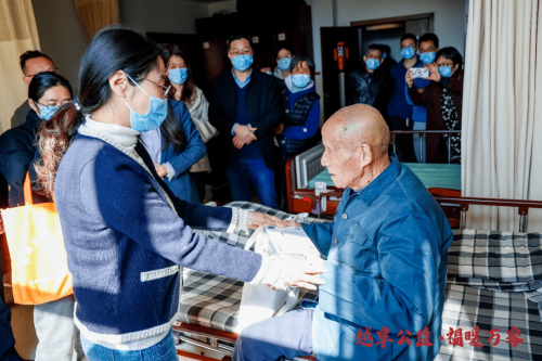 绍兴社会福利院,94岁的单厚生老爷爷接过福彩资助的收音机,那是单爷爷的“微心愿”。