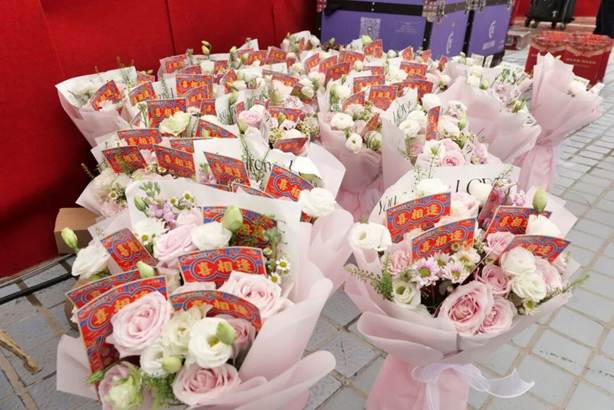 济南福彩中心为新人们精心准备了伴手礼,其中以福彩“喜相逢”刮刮乐拼成的彩票花束,更是成为备受瞩目的特别惊喜,让不少新人眼前一亮、满心欢喜。这份别出心裁的花束,不仅承载着“好运常伴、幸福绵长”的美好寓意,更让新人们在喜悦中触摸到公益福彩的温度,既体验了刮彩的乐趣,也悄然种下了社会责任的种子,为这场婚礼增添了别样的惊喜与厚重感。
