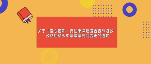 关于“爱心福彩·资助来深建设者春节返乡”公益活动火车票取票时间变更的通知