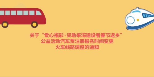 关于“爱心福彩·资助来深建设者春节返乡”公益活动汽车票注册报名时间变更、火车线路调整的通知