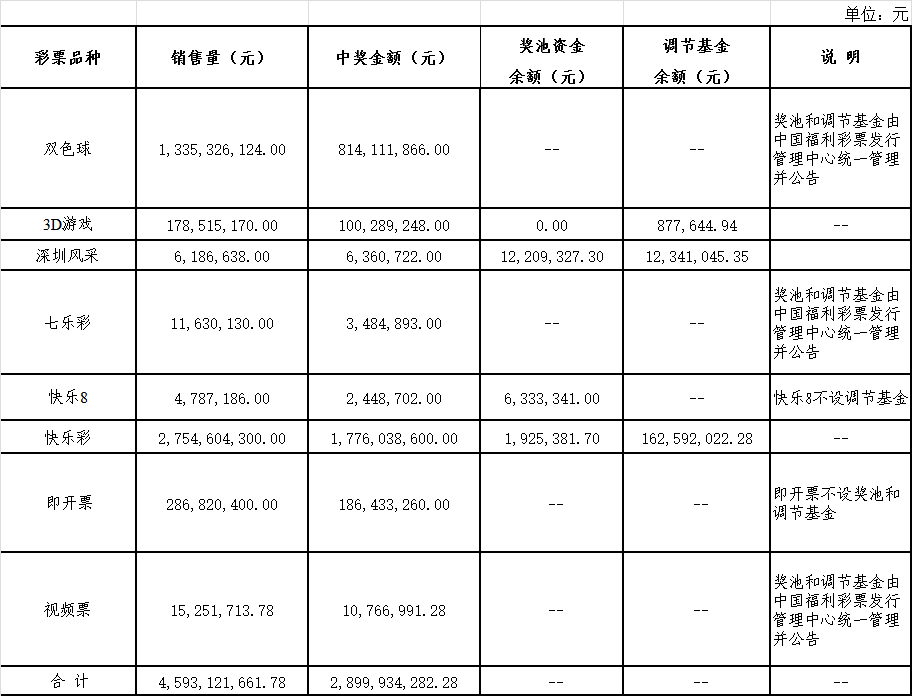根据《彩票管理条例》(国务院令第554号)、《彩票管理条例实施细则》(财政部、民政部、国家体育总局令第67号)和《财政部关于贯彻落实〈彩票管理条例实施细则〉的通知》(财综〔2012〕6号)的有关规定,现将深圳市2018年度福利彩票发行销售有关情况公告如下: